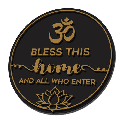Wooden 3D Sign Om Bless This Home with Lotus